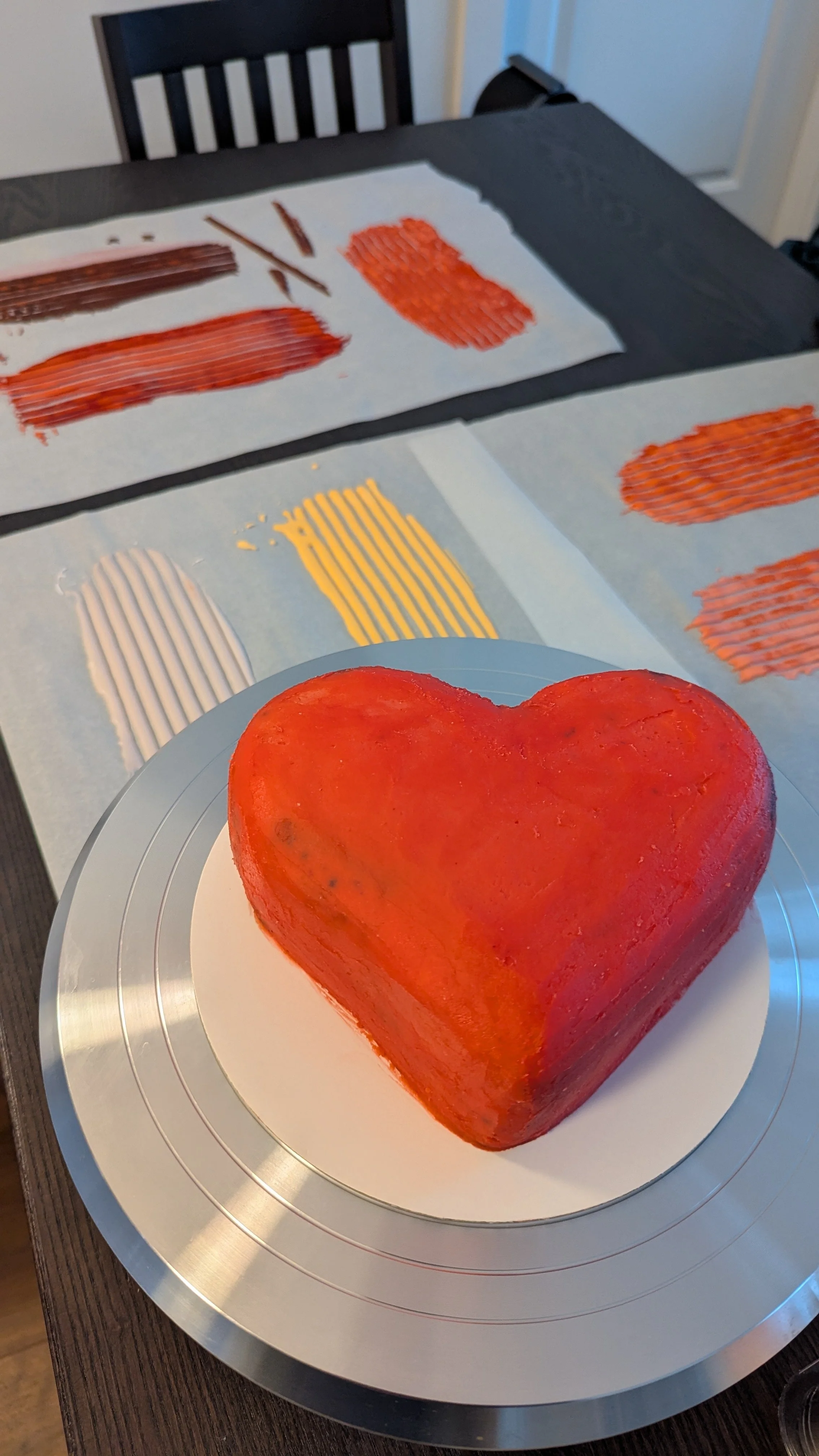 I aimed to create a heart-shaped cake that resembles a 3D disco ball without using glitter, reflective materials, or fondant. Instead, I used hundreds of homemade sprinkles.